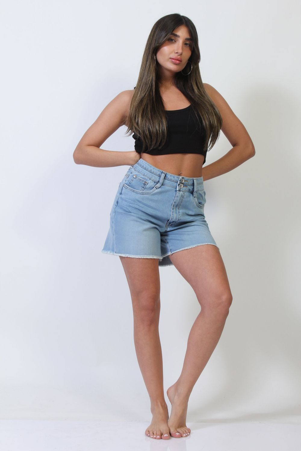 ג׳ינס קצר פרנזים כחול בהיר